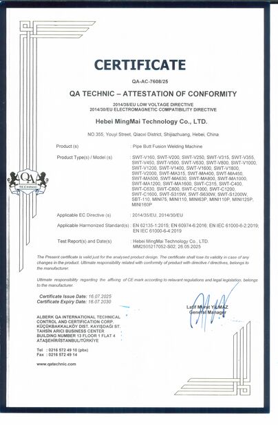 Hebei Mingmai Technology Co.,LTD (MM-Tech) es uno de los fabricantes integrales de equipos de soldadura termoplástica y un exportador profesional con experiencia en China.
